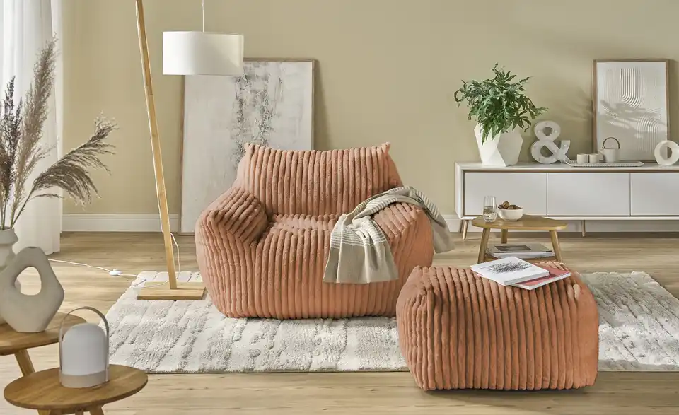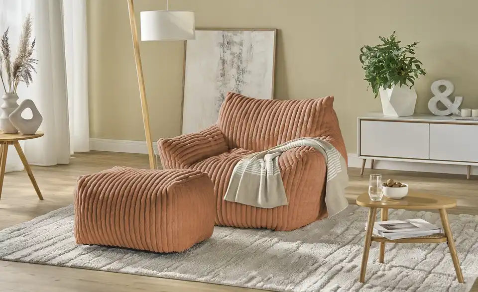Ruheoase per Paket? Geht! Dieses Sessel-Hocker-Set wird vakuumiert geliefert. Einfach öffnen und die beiden Sitzpolster sind in wenigen Minuten einsatzbereit. Der trendige Cordstoff ist kuschelweich und modern. Entscheiden Sie sich nur noch für eine der kombinationsfreudigen Farben und machen Sie es sich gemütlich.Lieferung & Versand