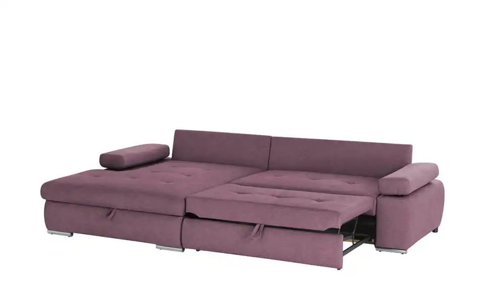 Das Ecksofa Ibby mit seiner weitläufigen L-Form bietet viel Platz zum Entspannen und Erholen. Die Sitzfläche ist mit einer Wellenunterfederung ausgestattet. Darauf befindet sich eine Polsterung aus Schaumstoff, die sich auch im Rückenbereich und den Armlehnen wiederfindet. Somit ist ein angenehmes Sitzen und Liegen gewährleistet. Für noch mehr Komfort sind drei Rückenkissen im Lieferumfang enthalten. Die Armlehnen lassen sich individuell verstellen. Ein weiteres Highlight von Ibby ist die Schlaffunktion: Ziehen Sie Ibby einfach zum Gästebett aus. Im großzügigen Bettkasten unter der Sitzfläche können Sie zum Beispiel Bettwäsche für den Besuch verstauen. Ibby ist rundum mit einem einfarbigen Stoff bezogen. So können Sie Ibby auch frei in den Wohnraum stellen. Wählen Sie aus verschiedenen strapazierfähigen Stoffbezügen und bestimmen Sie die Gestaltung Ihres Sofas ganz einfach selbst.Lieferung & Versand