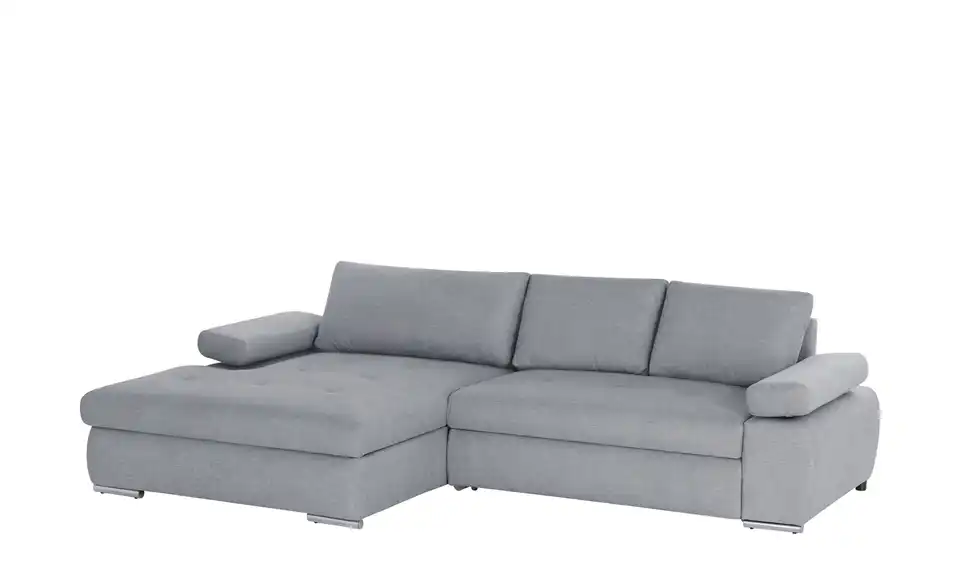 Das Ecksofa Ibby mit seiner weitläufigen L-Form bietet viel Platz zum Entspannen und Erholen. Die Sitzfläche ist mit einer Wellenunterfederung ausgestattet. Darauf befindet sich eine Polsterung aus Schaumstoff, die sich auch im Rückenbereich und den Armlehnen wiederfindet. Somit ist ein angenehmes Sitzen und Liegen gewährleistet. Für noch mehr Komfort sind drei Rückenkissen im Lieferumfang enthalten. Die Armlehnen lassen sich individuell verstellen. Ein weiteres Highlight von Ibby ist die Schlaffunktion: Ziehen Sie Ibby einfach zum Gästebett aus. Im großzügigen Bettkasten unter der Sitzfläche können Sie zum Beispiel Bettwäsche für den Besuch verstauen. Ibby ist rundum mit einem einfarbigen Stoff bezogen. So können Sie Ibby auch frei in den Wohnraum stellen. Wählen Sie aus verschiedenen strapazierfähigen Stoffbezügen und bestimmen Sie die Gestaltung Ihres Sofas ganz einfach selbst.Lieferung & Versand