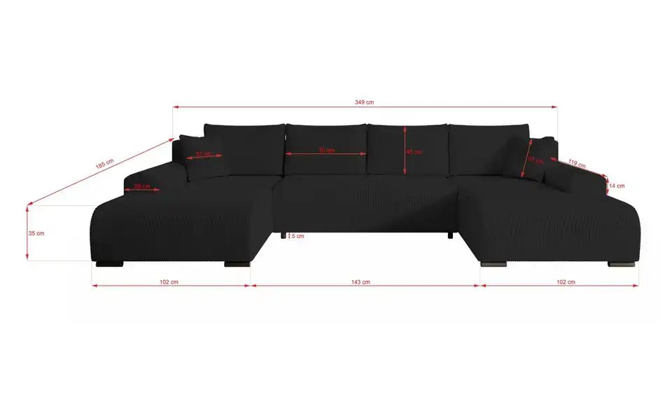 - Lieferumfang / mitgeliefertes ZubehörEcksofa, Kissen, Aufbauanleitung
