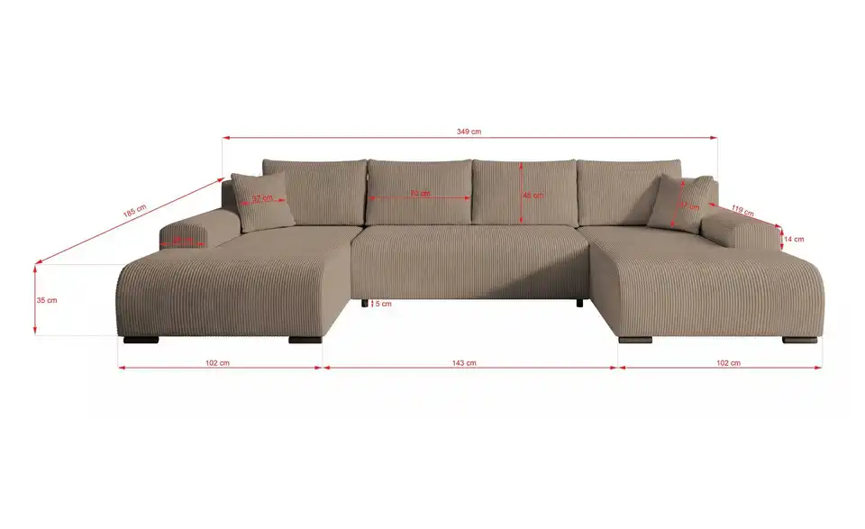 - Gesamtbreite349 cm