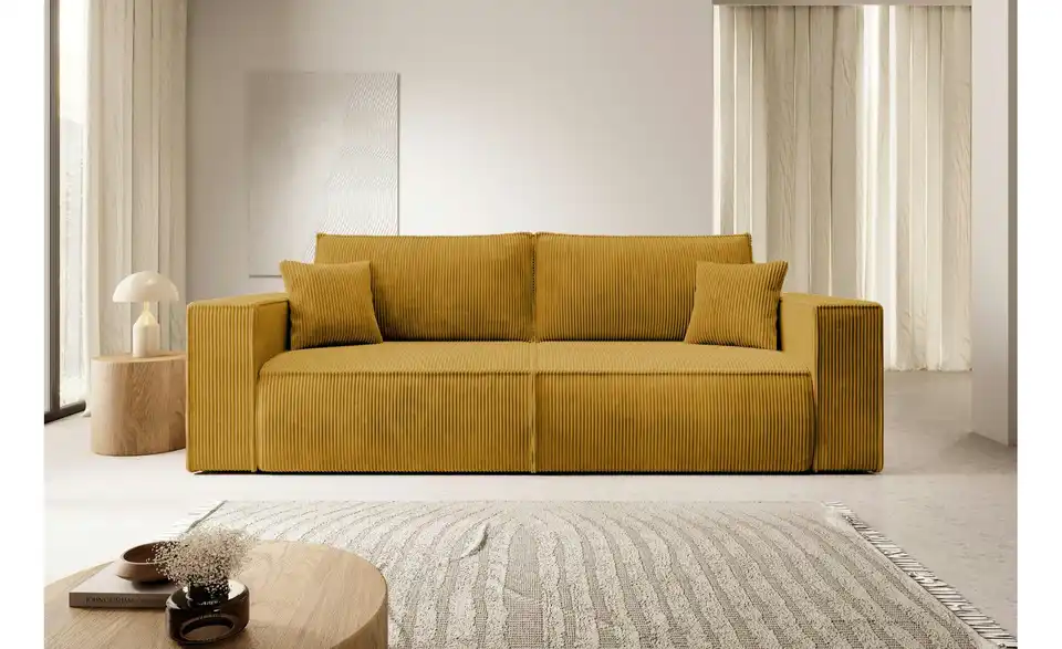 - Lieferumfang / mitgeliefertes Zubehör1 Schlafsofa mit 2 Zierkissen