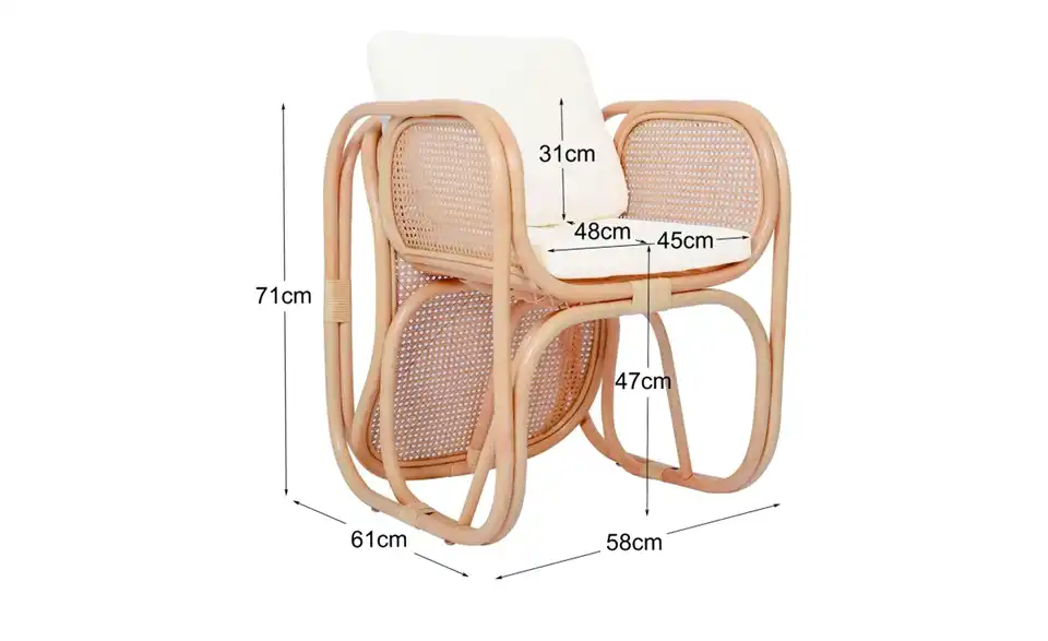 - Lieferumfang / mitgeliefertes ZubehörRattansessel + Sitzkissen und Zierkissen