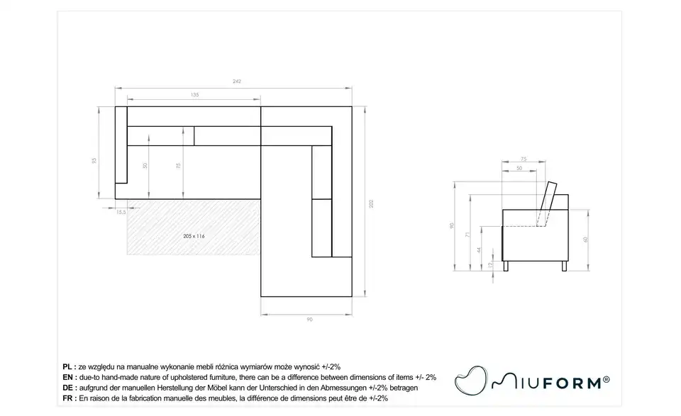 - Gesamtbreite242 cm