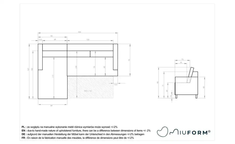 Miuform Ecksofa mit Schlaffunktion Scandic Lagom