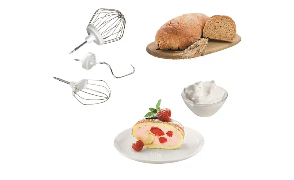 - inkl. Schlagbesen, Rührbesen, Knethaken