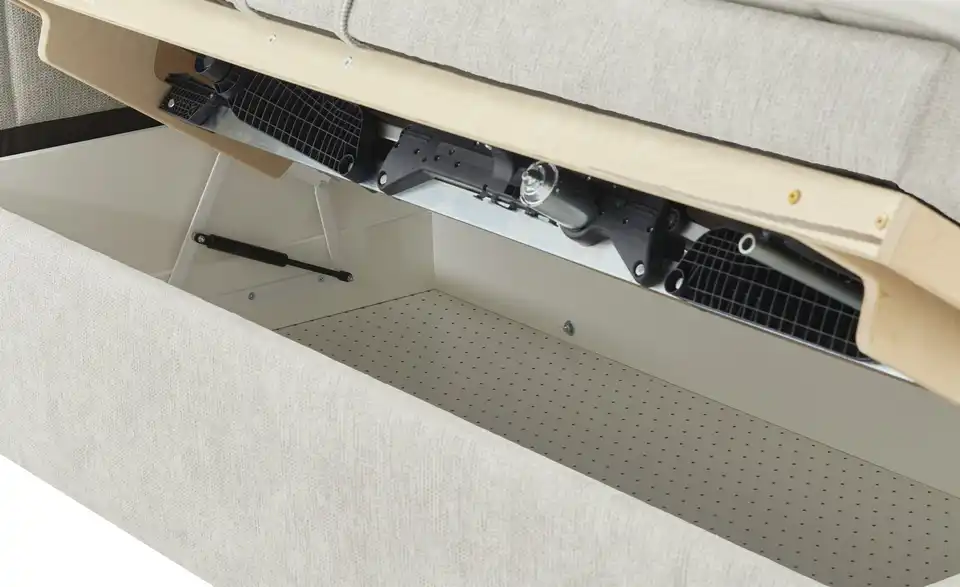 - Mehr zu Ausstattung / Funktion7 LiegezonenMatratzenbezug abnehmbarMatratzenbezug teilbar & einzeln waschbar4 Matratzengriffe ermöglichen ein leichtes Drehen der MatratzeMatratzenbezug abnehmbar und waschbar bis 60 GradKopf- und Fußteil separat verstellbarBettkasten mit gelochter Bodenplatte für gute LuftzirkulationBettkasten mit Queröffnung und Gasdruckfederbesseres Schlafklima durch Climabox im Unterbausicherer Halt der Matratzen durch Anti-Rutsch-Einsatz im Unterbau