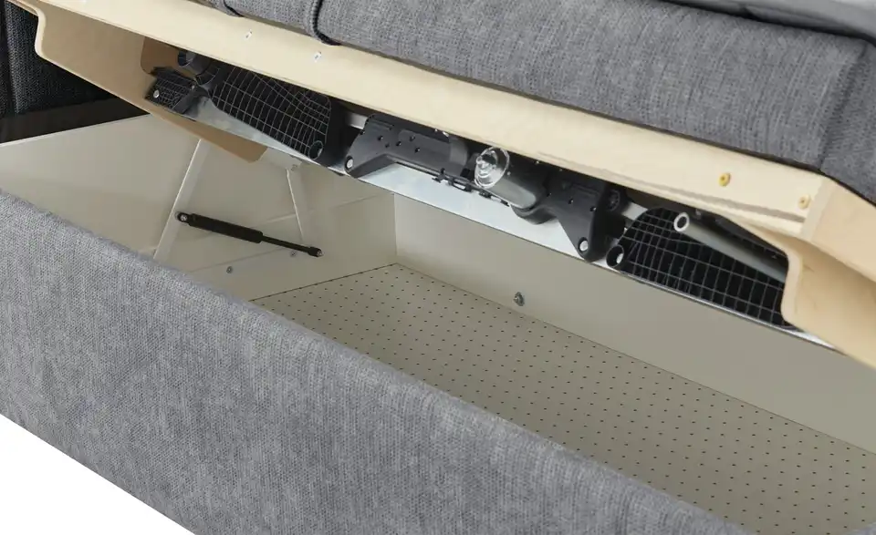 - Mehr zu Ausstattung / Funktion7 LiegezonenMatratzenbezug abnehmbarMatratzenbezug teilbar & einzeln waschbar4 Matratzengriffe ermöglichen ein leichtes Drehen der MatratzeMatratzenbezug abnehmbar und waschbar bis 60 GradKopf- und Fußteil separat verstellbarBettkasten mit gelochter Bodenplatte für gute LuftzirkulationBettkasten mit Queröffnung und Gasdruckfederbesseres Schlafklima durch Climabox im Unterbausicherer Halt der Matratzen durch Anti-Rutsch-Einsatz im Unterbau