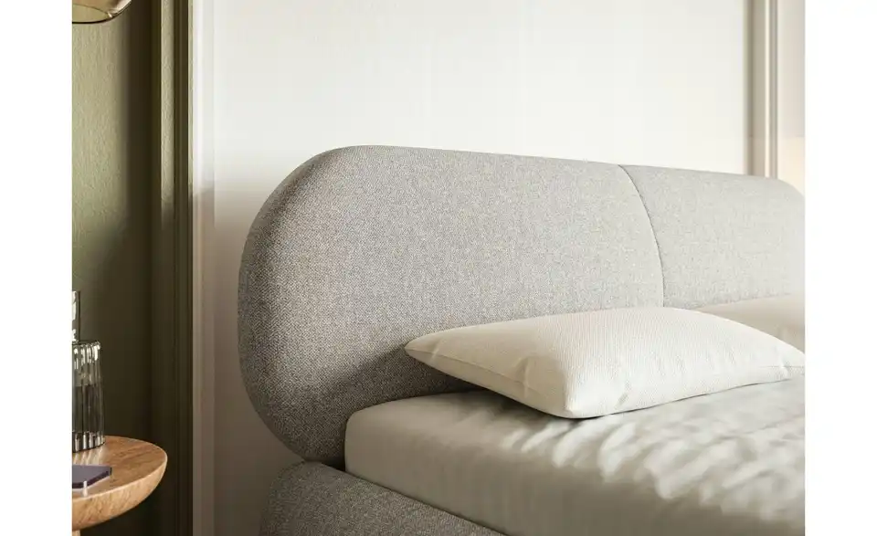 - Lieferumfang / mitgeliefertes ZubehörGreiges Polsterbett mit Bettkasten 160x200 cm