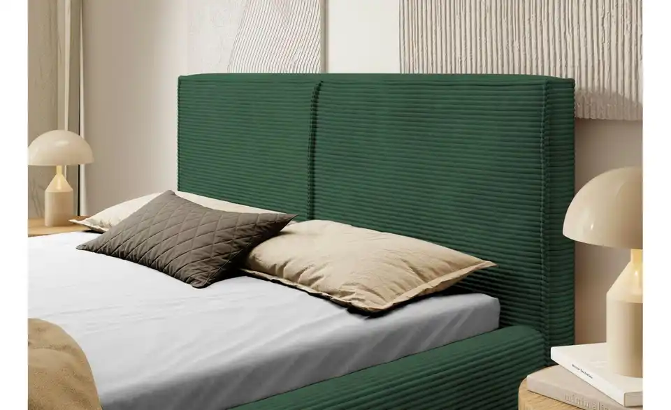 - Lieferumfang / mitgeliefertes ZubehörDunkelgrünes Polsterbett mit Bettkasten 160x200 cm