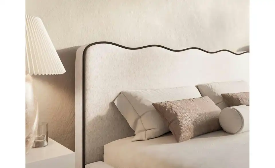 - Lieferumfang / mitgeliefertes ZubehörHellbeiges Polsterbett mit Lattenrost 180x200 cm