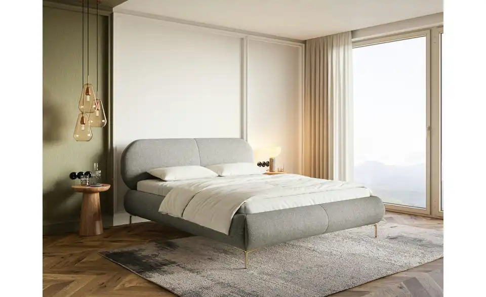 - Lieferumfang / mitgeliefertes ZubehörGraues Polsterbett mit Lattenrost 140x200 cm