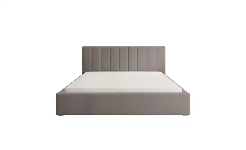- Lieferumfang / mitgeliefertes ZubehörBeiges Polsterbett mit Bettkasten 200x200 cm