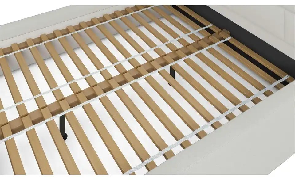 - Lieferumfang / mitgeliefertes ZubehörCremefarbenes Polsterbett mit Lattenrost 160x200 cm