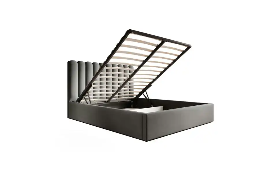 - Ausstattung / Funktioninnen liegender BettkastenBettkastenöffnung am Fußteilmit Gasdruckfeder