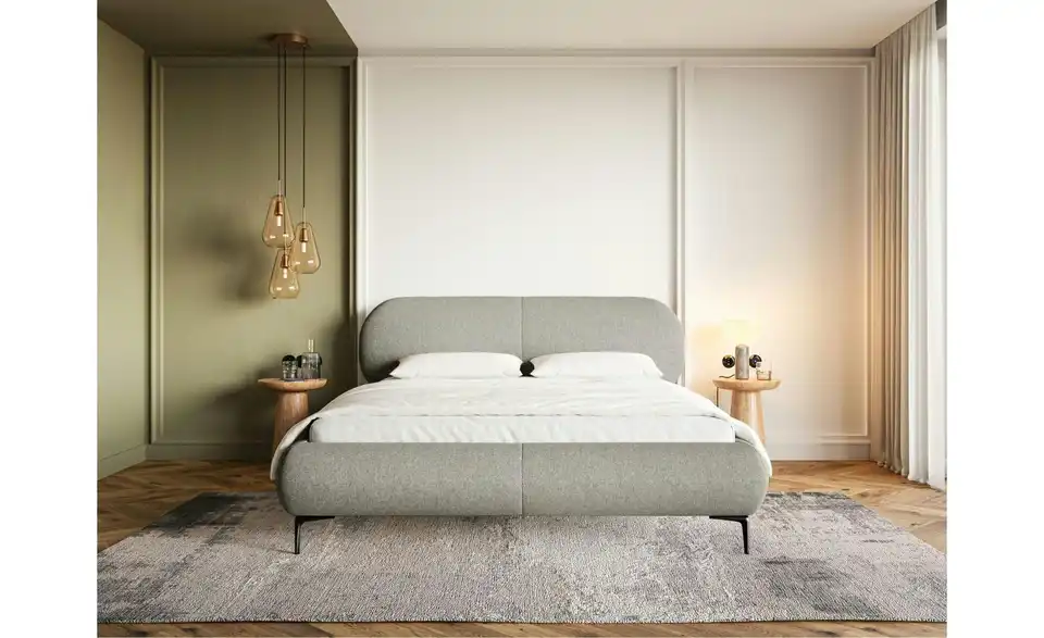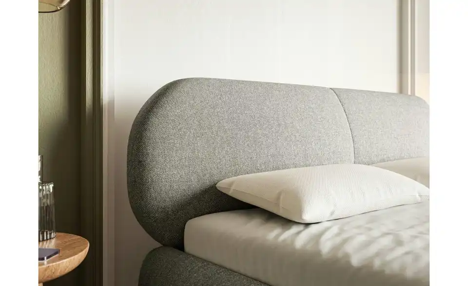 - Lieferumfang / mitgeliefertes ZubehörGraues Polsterbett mit Bettkasten 160x200 cm