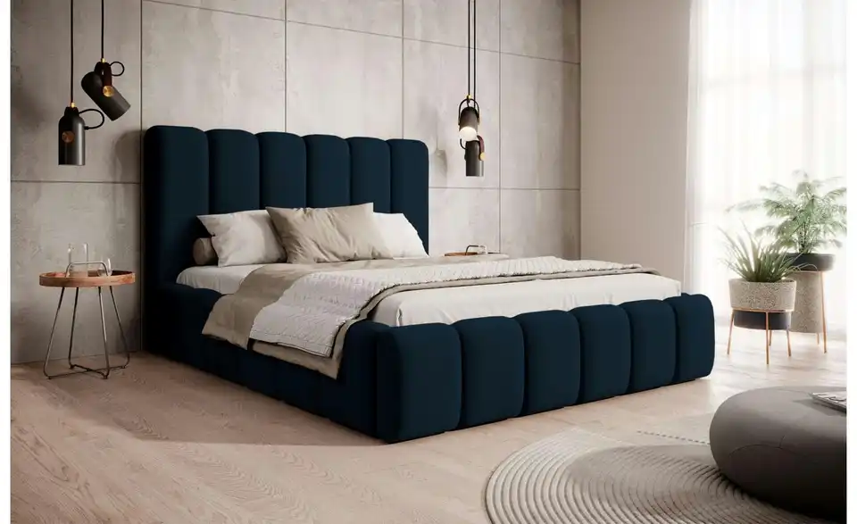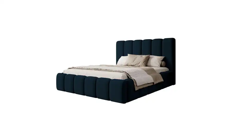 - Lieferumfang / mitgeliefertes ZubehörBlaues Polsterbett mit Bettkasten 160x200 cm