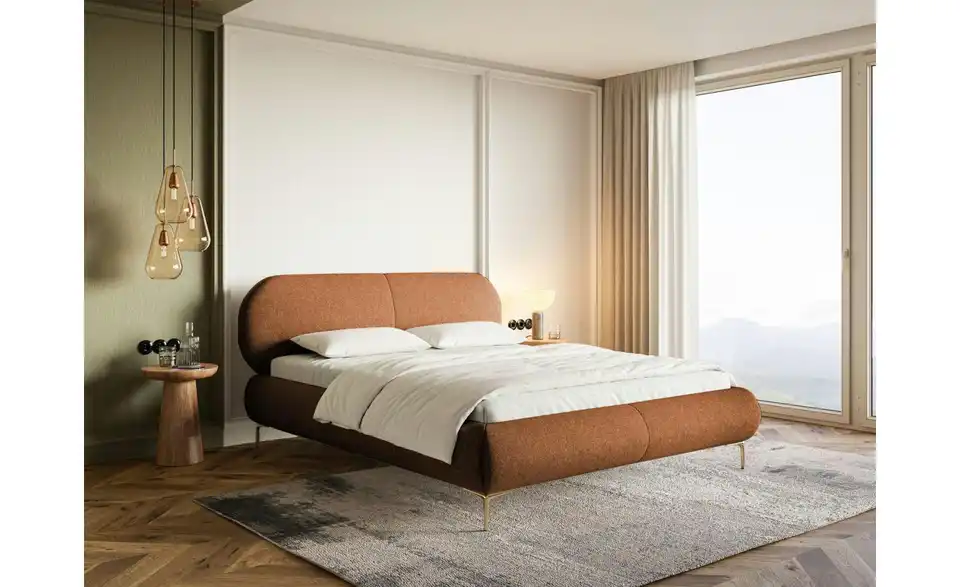 - Lieferumfang / mitgeliefertes ZubehörKupferfarbenes Polsterbett mit Lattenrost 160x200 cm