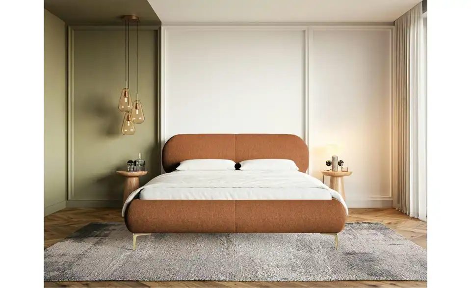 - Lieferumfang / mitgeliefertes ZubehörKupferfarbenes Polsterbett mit Bettkasten 160x200 cm