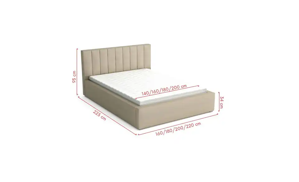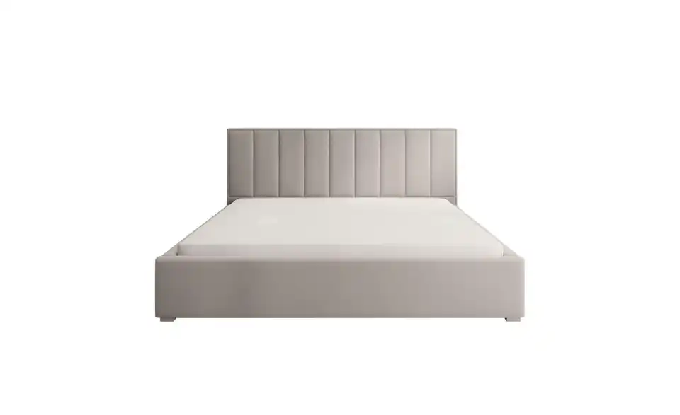 - Lieferumfang / mitgeliefertes ZubehörGreiges Polsterbett mit Bettkasten 180x200 cm