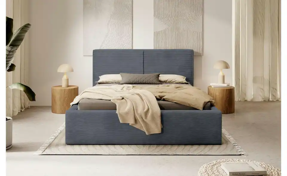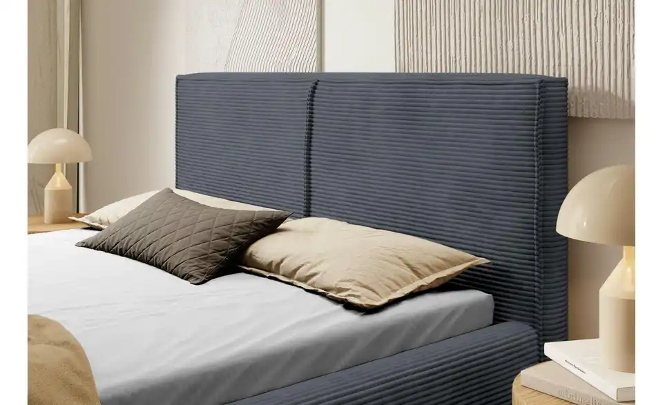 - Lieferumfang / mitgeliefertes ZubehörGraues Polsterbett mit Bettkasten 160x200 cm