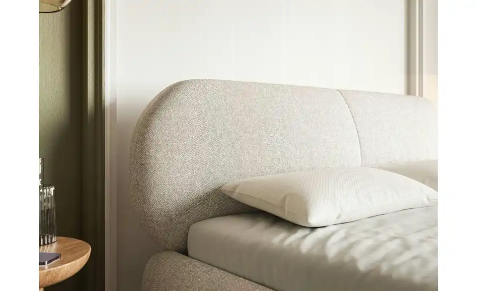 - Lieferumfang / mitgeliefertes ZubehörHellbeiges Polsterbett mit Lattenrost 140x200 cm