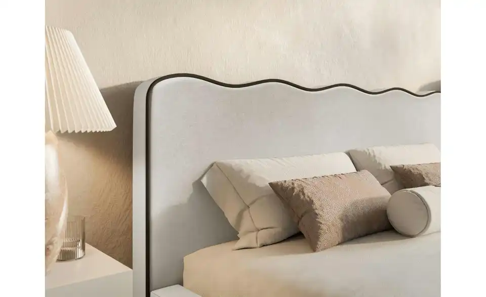 - Lieferumfang / mitgeliefertes ZubehörHellbeiges Polsterbett mit Lattenrost 160x200 cm