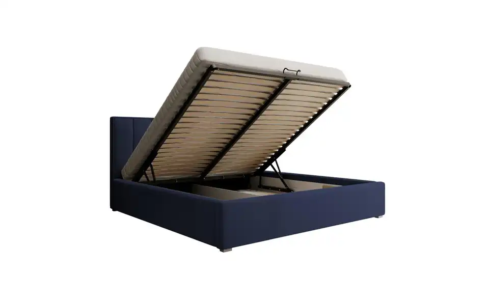 - Lieferumfang / mitgeliefertes ZubehörBlaues Polsterbett mit Bettkasten 180x200 cm