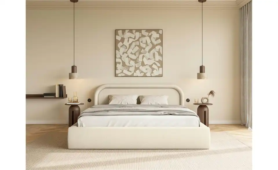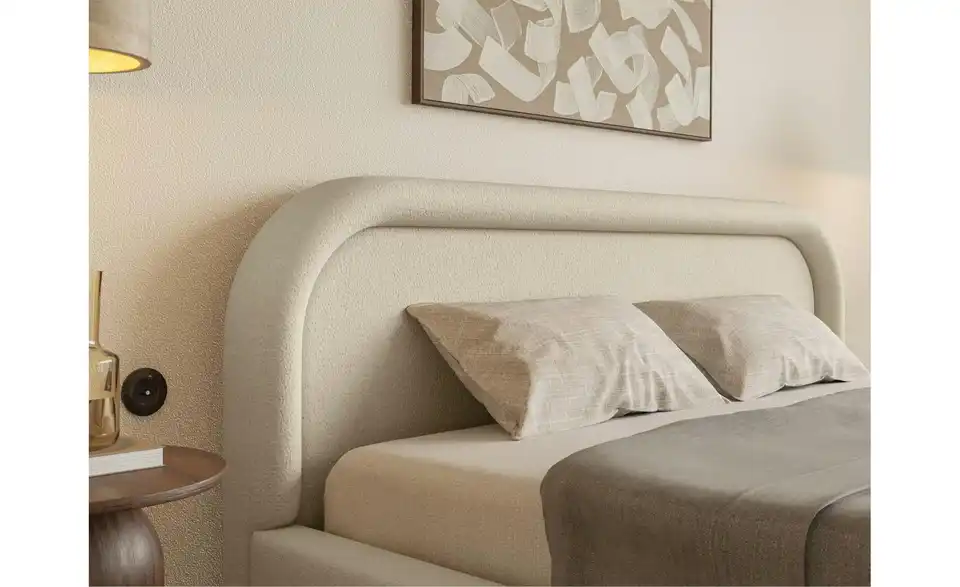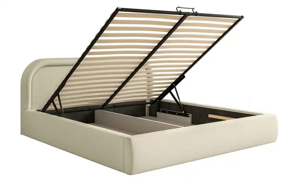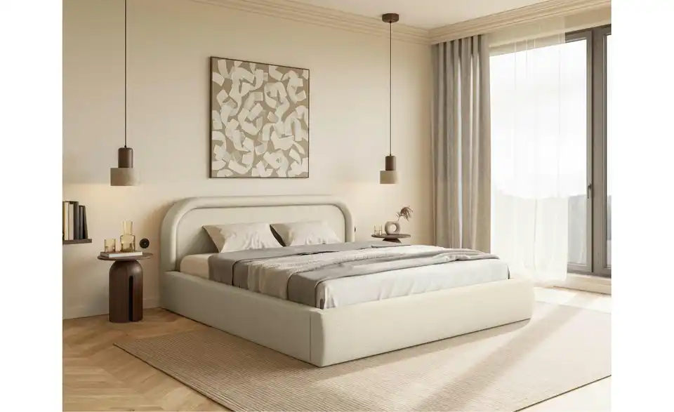 - Lieferumfang / mitgeliefertes ZubehörBeiges Polsterbett mit Bettkasten 140x200 cm