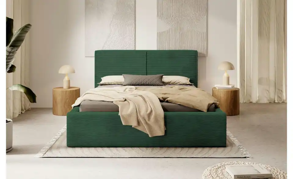 - Lieferumfang / mitgeliefertes ZubehörDunkelgrünes Polsterbett mit Bettkasten 180x200 cm
