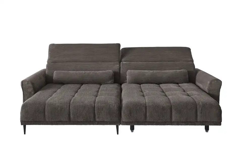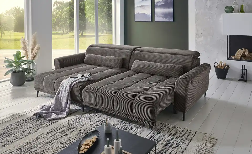 Das Ecksofa Logan vereint modernen Komfort mit trendigem Design. Der hochwertige Cordstoff sorgt für einen modernen Look und lädt gleichzeitig zum Wohlfühlen ein. Dank der elektrischen XXL-Sitztiefenverstellung lässt sich die Sitztiefe auf Knopfdruck anpassen – perfekt für gemütliche Filmabende oder entspannte Stunden zu zweit. Für zusätzlichen Komfort sorgt die manuelle Kopfteilverstellung, mit der Sie Ihre Lieblingsposition ganz einfach finden. Das Sofa steht auf schwarzen Metallfüßen, die nicht nur stabil, sondern auch stilvoll sind. Die Nosag-Wellenunterfederung und der Polyätherschaum in der Polsterung bieten langlebigen Sitzkomfort. Mit seiner rundum bezogenen Rückseite ist das Ecksofa frei im Raum stellbar und somit vielseitig einsetzbar. Logan ist die ideale Wahl für alle, die Komfort und Design schätzen – ein echter Blickfang, der modernes Wohnen neu definiert.Lieferung & Versand