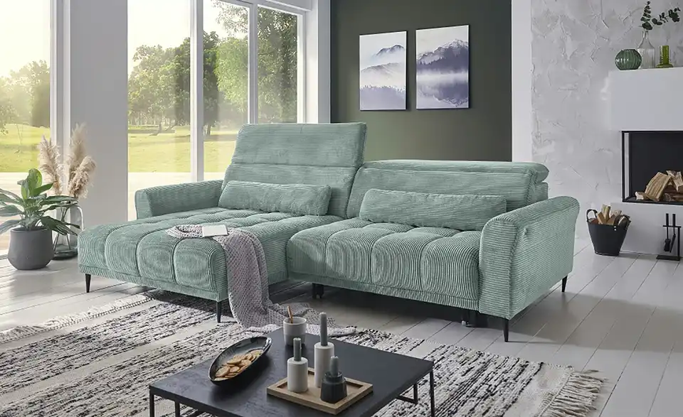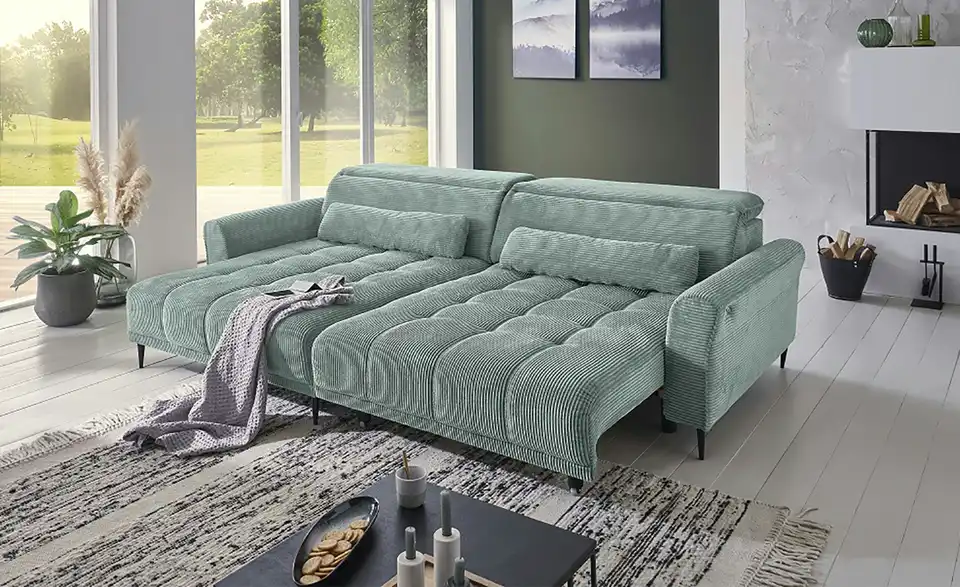 Das Ecksofa Logan vereint modernen Komfort mit trendigem Design. Der hochwertige Cordstoff sorgt für einen modernen Look und lädt gleichzeitig zum Wohlfühlen ein. Dank der elektrischen XXL-Sitztiefenverstellung lässt sich die Sitztiefe auf Knopfdruck anpassen – perfekt für gemütliche Filmabende oder entspannte Stunden zu zweit. Für zusätzlichen Komfort sorgt die manuelle Kopfteilverstellung, mit der Sie Ihre Lieblingsposition ganz einfach finden. Das Sofa steht auf schwarzen Metallfüßen, die nicht nur stabil, sondern auch stilvoll sind. Die Nosag-Wellenunterfederung und der Polyätherschaum in der Polsterung bieten langlebigen Sitzkomfort. Mit seiner rundum bezogenen Rückseite ist das Ecksofa frei im Raum stellbar und somit vielseitig einsetzbar. Logan ist die ideale Wahl für alle, die Komfort und Design schätzen – ein echter Blickfang, der modernes Wohnen neu definiert.Lieferung & Versand