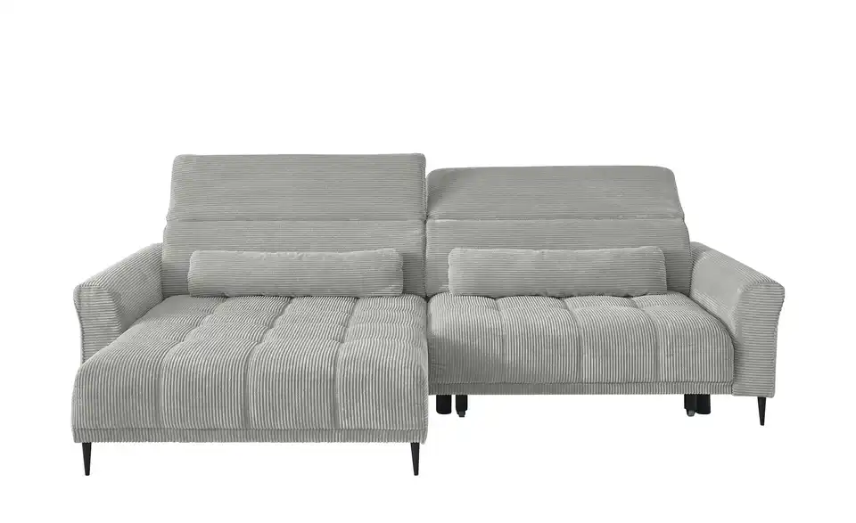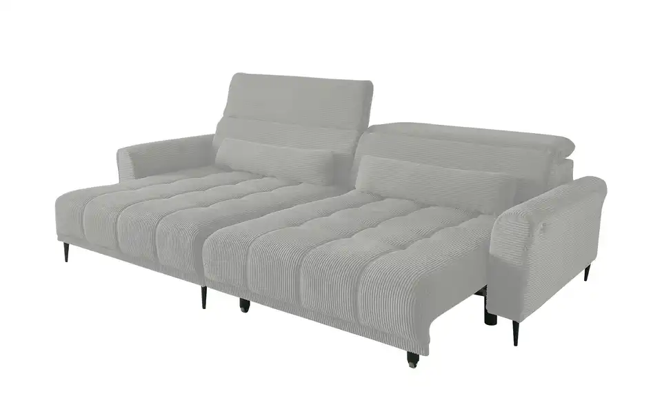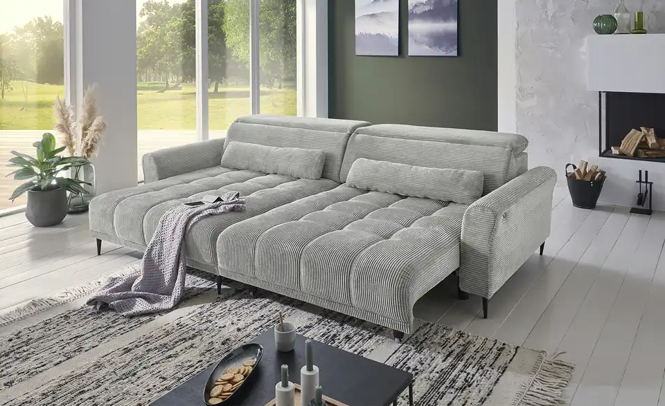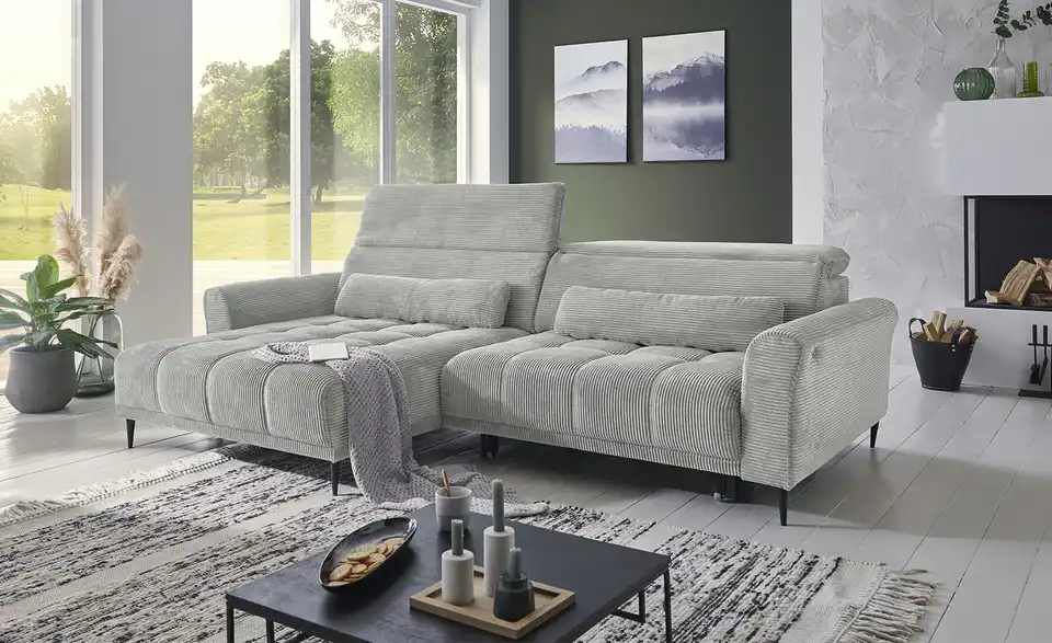 Das Ecksofa Logan vereint modernen Komfort mit trendigem Design. Der hochwertige Cordstoff sorgt für einen modernen Look und lädt gleichzeitig zum Wohlfühlen ein. Dank der elektrischen XXL-Sitztiefenverstellung lässt sich die Sitztiefe auf Knopfdruck anpassen – perfekt für gemütliche Filmabende oder entspannte Stunden zu zweit. Für zusätzlichen Komfort sorgt die manuelle Kopfteilverstellung, mit der Sie Ihre Lieblingsposition ganz einfach finden. Das Sofa steht auf schwarzen Metallfüßen, die nicht nur stabil, sondern auch stilvoll sind. Die Nosag-Wellenunterfederung und der Polyätherschaum in der Polsterung bieten langlebigen Sitzkomfort. Mit seiner rundum bezogenen Rückseite ist das Ecksofa frei im Raum stellbar und somit vielseitig einsetzbar. Logan ist die ideale Wahl für alle, die Komfort und Design schätzen – ein echter Blickfang, der modernes Wohnen neu definiert.Lieferung & Versand