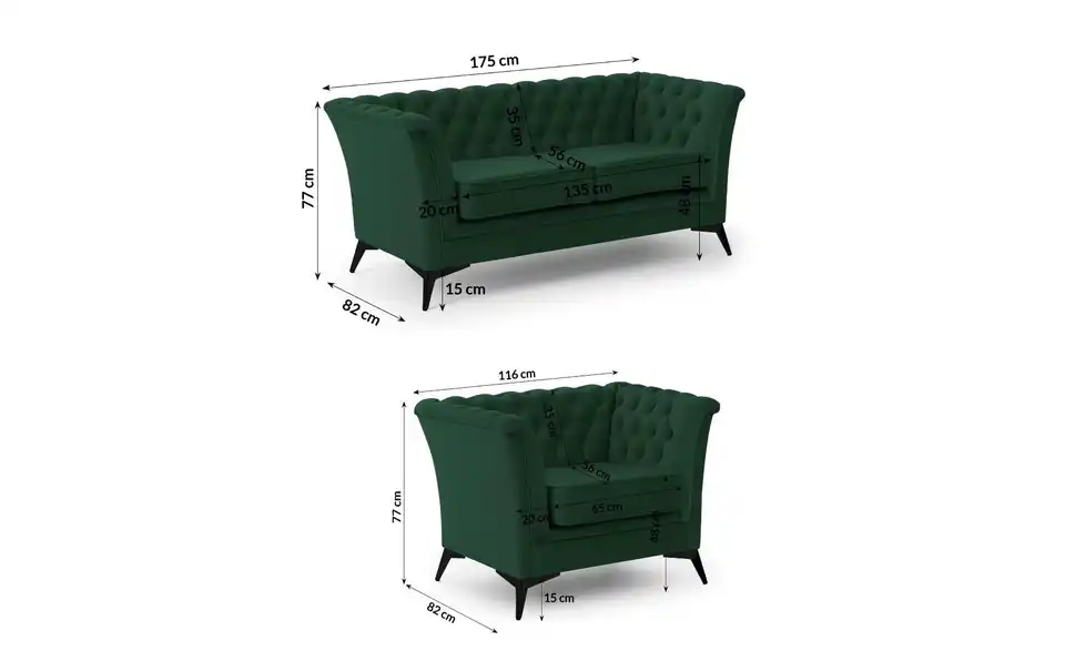 S-STYLE Chesterfield Polstergarnitur 2+1 Wilhelm