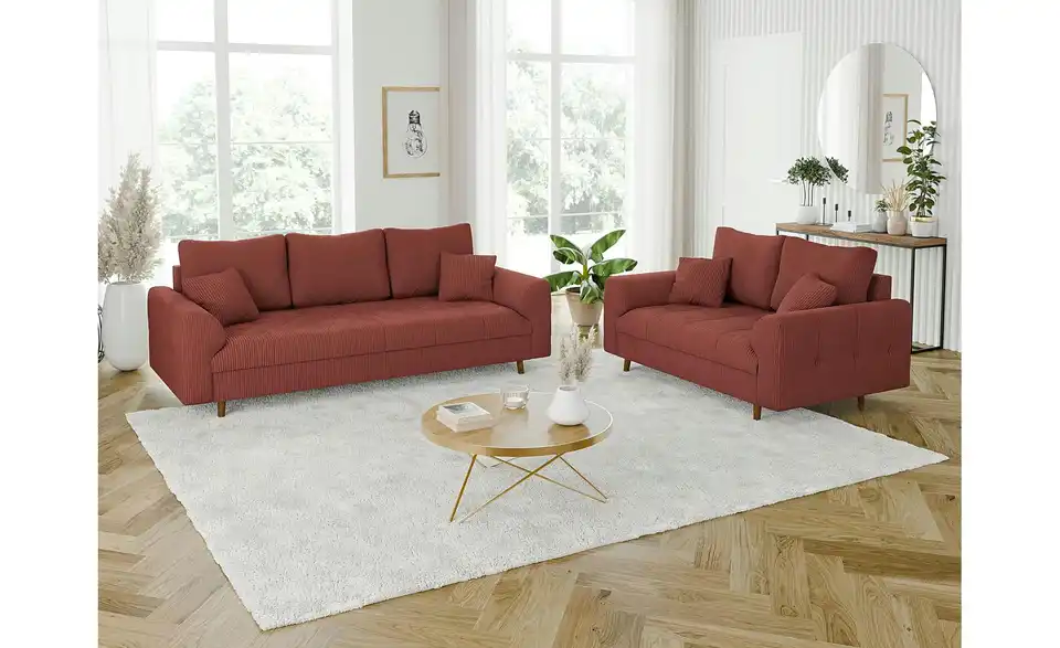 - Lieferumfang / mitgeliefertes ZubehörMontagematerial, 2-Sitzer Sofa, 2x Rückenkissen, 2x Zierkissen