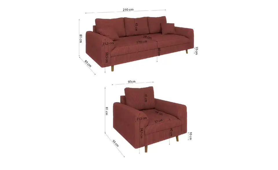 - Sofa 3-sitzig (BxHxT)210 x 93 x 81