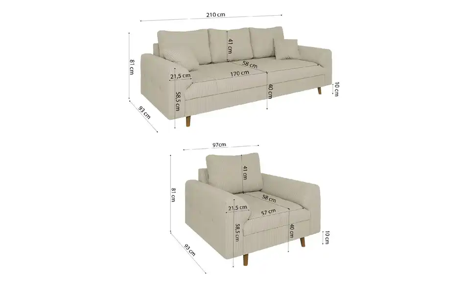 - Sofa 3-sitzig (BxHxT)210 x 93 x 81