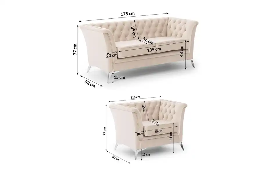 S-STYLE Chesterfield Polstergarnitur 2+1 Wilhelm