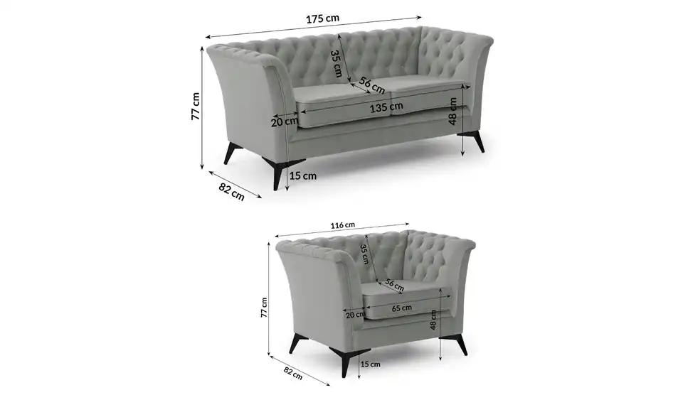 - Lieferumfang / mitgeliefertes Zubehör1 x 2-Sitzer Sofa, Sessel, Montagematerial