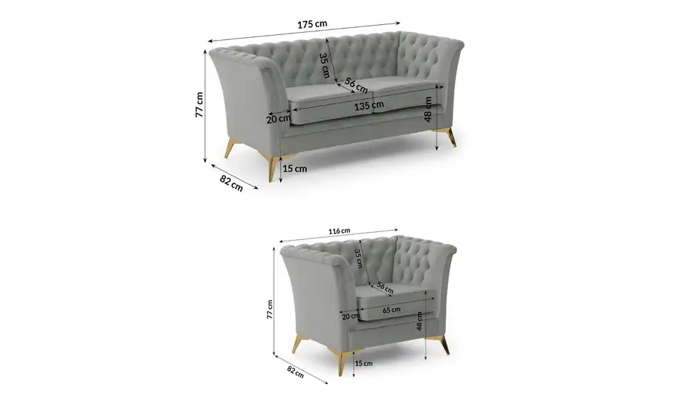 S-STYLE Chesterfield Polstergarnitur 2+1 Wilhelm