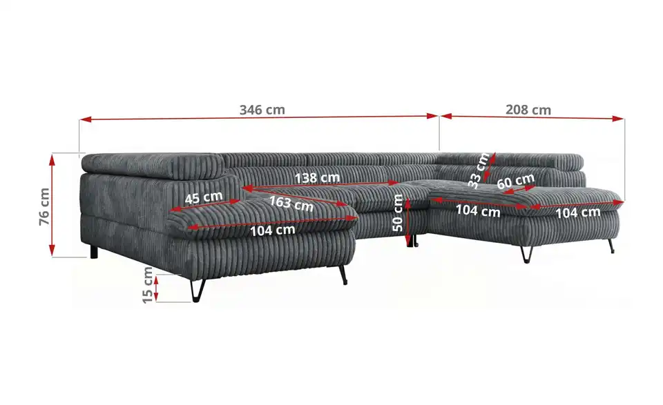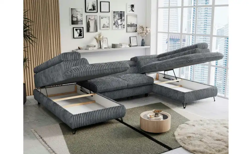 - AusführungWohnlandschaft Dunkelgrau Cord