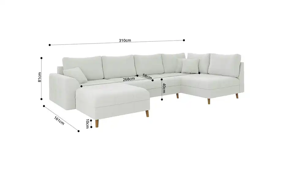 - Lieferumfang / mitgeliefertes ZubehörWohnlandschaft, Hocker, Montagematerial, 3 x Zierkissen