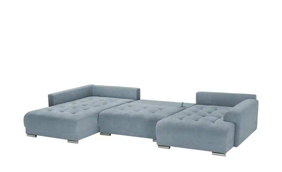 Richtig viel Platz für Freunde und Familie: Diese Wohnlandschaft überzeugt mit zwei einladenden Ottomanen und einer praktischen Schlaffunktion. Sitzen Sie zur Familienfeier bequem zusammen oder genießen Sie in großer Runde einen Filmeabend mit Freunden. Platz gibt es hier genug. Und wenn es doch etwas länger wird, können Sie mit nur wenigen Griffen den Mittelteil umklappen und zu einer Liegefläche umfunktionieren. Dann finden zwei Übernachtungsgäste problemlos Platz. Das dazugehörige Bettzeug lässt sich außerdem im geräumigen Bettkasten unter der Sitzfläche verstauen.Lieferung & Versand