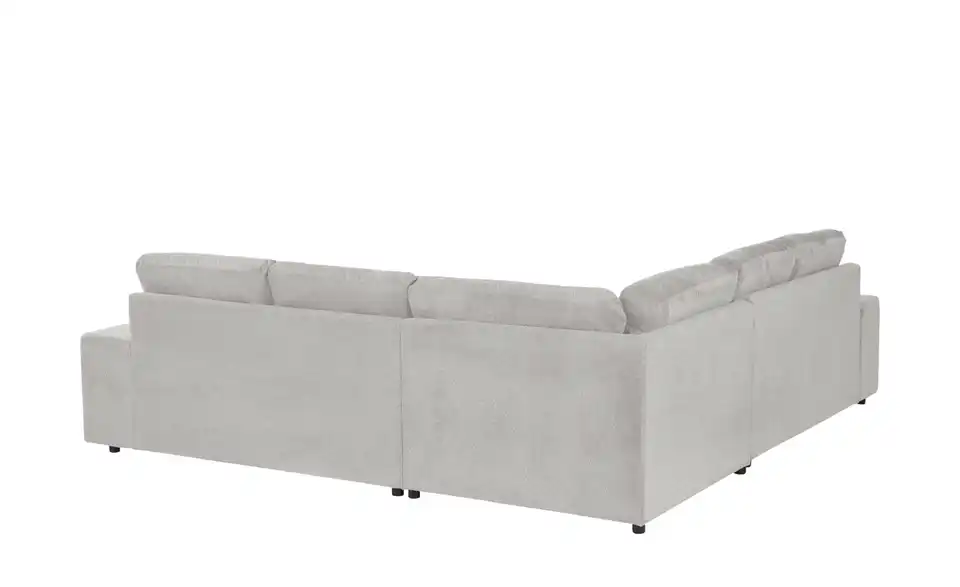 Mit diesem Ecksofa nutzen Sie Ihr Zuhause hervorragend aus. Die Couch lässt sich dank des echt bezogenen Rückens frei im Raum platzieren und hat eine komfortable Polsterung aus Schaumstoff für das maximale Wohlfühlerlebnis. Das Fundament des Sitzmöbels ist ein Gestell, welches aus Massivholz besteht. Um Rückenkissen brauchen Sie sich keine Gedanken mehr zu machen, denn diese liegen dem Sofa bereits bei. Lehnen Sie sich bequem zurück und genießen Sie die Entspannung auf der Couch.Lieferung & Versand