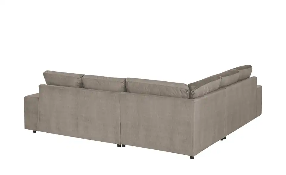Mit diesem Ecksofa nutzen Sie Ihr Zuhause hervorragend aus. Die Couch lässt sich dank des echt bezogenen Rückens frei im Raum platzieren und hat eine komfortable Polsterung aus Schaumstoff für das maximale Wohlfühlerlebnis. Das Fundament des Sitzmöbels ist ein Gestell, welches aus Massivholz besteht. Um Rückenkissen brauchen Sie sich keine Gedanken mehr zu machen, denn diese liegen dem Sofa bereits bei. Lehnen Sie sich bequem zurück und genießen Sie die Entspannung auf der Couch.Lieferung & Versand