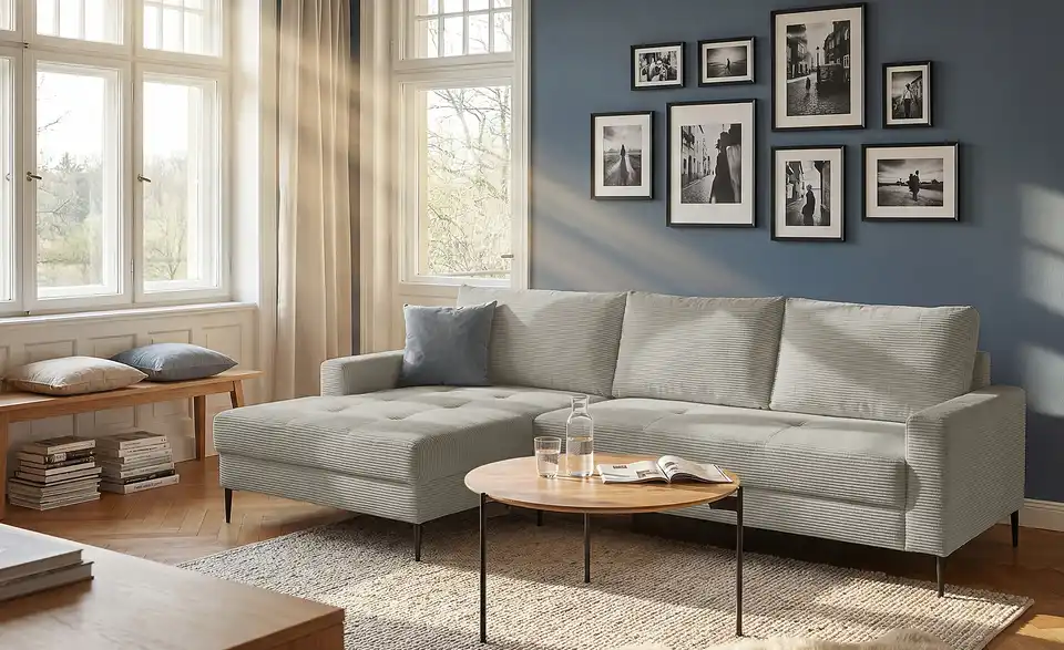 Klares Design trifft auf Komfort: Dieses elegante Sofa besticht durch seine strukturierte Polsterung, die schwarzen Metallfüße und die moderne Linienführung. Ideal für stilvolle Wohnzimmer, bietet es nicht nur eine gemütliche Sitzfläche, sondern fügt sich auch perfekt in verschiedene Einrichtungsstile ein.Lieferung & Versand