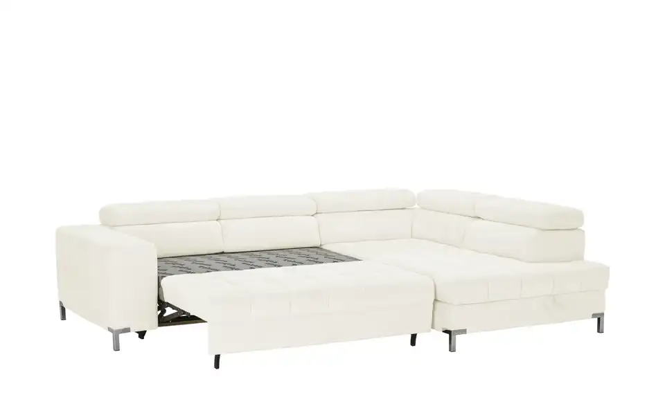 Dieses Ecksofa ist eine großartige Bereicherung für Ihre Einrichtung. Die Couch wird dank der Kopfteilverstellung zu einer absoluten Oase der Entspannung, lädt aufgrund des Federkerns sowie der Polsterung aus Schaumstoff zum Relaxen ein und ist frei im Raum platzierbar. Das Gestell ist aus Metall gefertigt. Die Couch weist einen Bettkasten, in dem die Gästebettwäsche verstaut werden kann, auf, nimmt 284 x 97 x 200 cm ein und lädt mit der geräumigen Sitztiefe von 62 cm zum Relaxen ein. Dieses Sofa garantiert jedem Zuhause außergewöhnliche Wohlfühlmomente.Lieferung & Versand