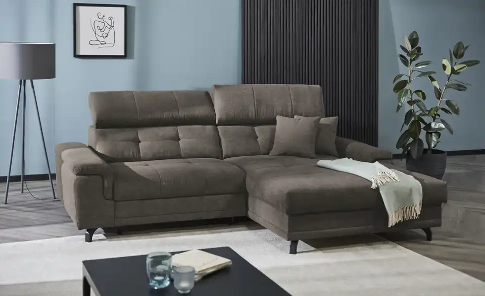 Das Ecksofa Frieda garantiert ein äußerst gemütliches Wohngefühl. Das Sofa ist dank der Kopfteilverstellung extrem komfortabel, hat eine Polsterung aus Kaltschaum für das maximale Wohlfühlerlebnis und verfügt über einen echt bezogenen Rücken, sodass es auch mitten im Raum aufgestellt werden kann. Das Fundament der Couch bildet ein Gestell, das aus Metall besteht. Das Modell Frieda dient aufgrund des integrierten Bettkastens als Stauraummöbel und nimmt 258 x 87 x 180 cm ein. Dieses Sofa wertet Ihr Zuhause optisch wie funktionell auf.Lieferung & Versand