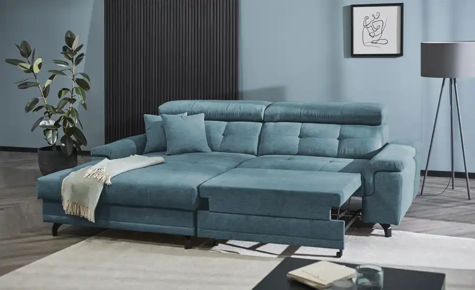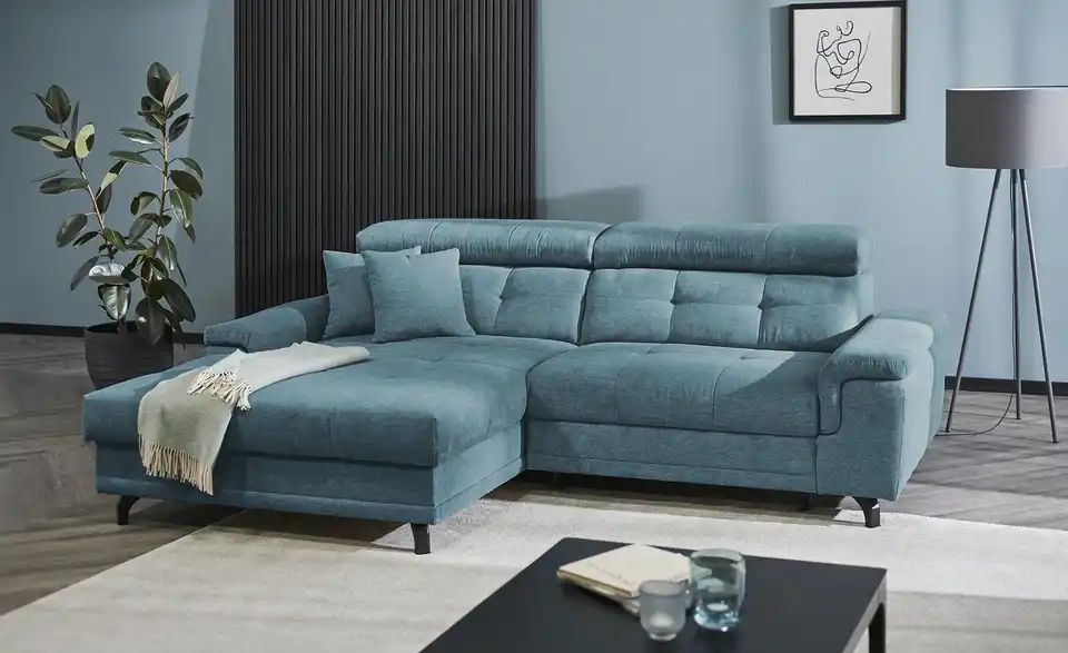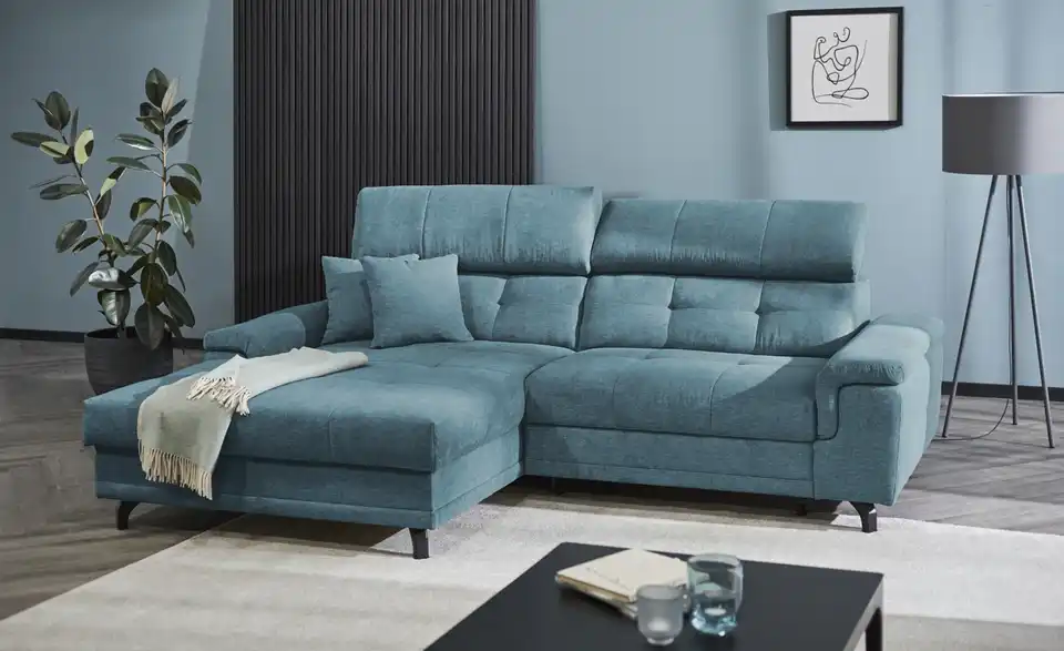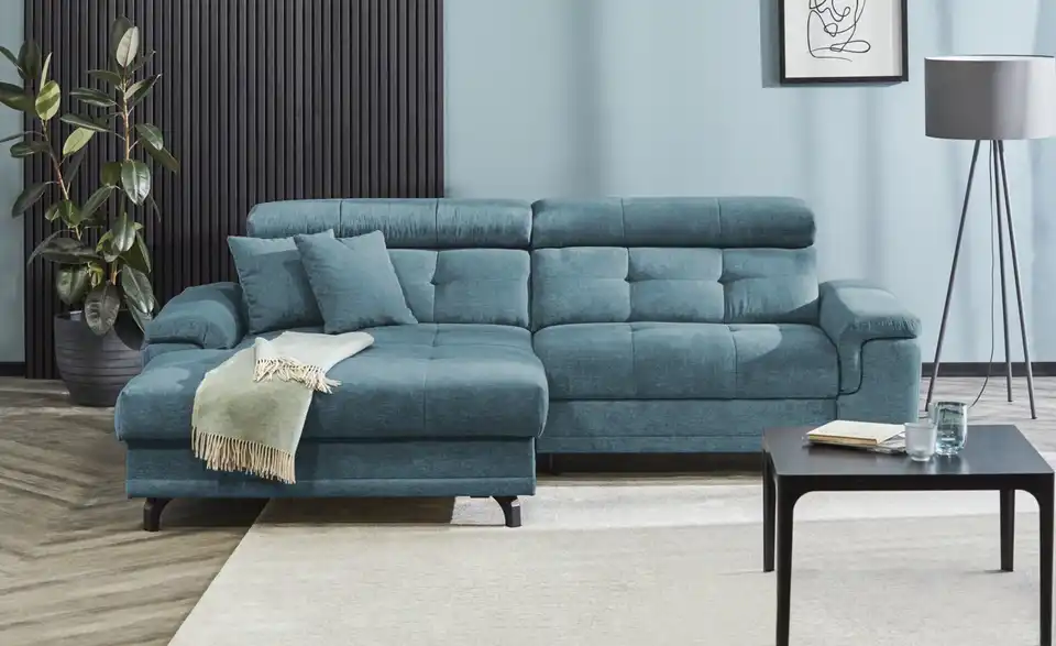 Das Ecksofa Frieda garantiert ein äußerst gemütliches Wohngefühl. Das Sofa ist dank der Kopfteilverstellung extrem komfortabel, hat eine Polsterung aus Kaltschaum für das maximale Wohlfühlerlebnis und verfügt über einen echt bezogenen Rücken, sodass es auch mitten im Raum aufgestellt werden kann. Das Fundament der Couch bildet ein Gestell, das aus Metall besteht. Das Modell Frieda dient aufgrund des integrierten Bettkastens als Stauraummöbel und nimmt 258 x 87 x 180 cm ein. Dieses Sofa wertet Ihr Zuhause optisch wie funktionell auf.Lieferung & Versand