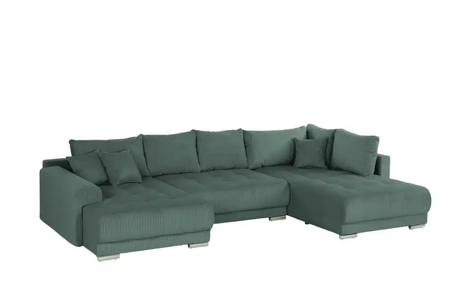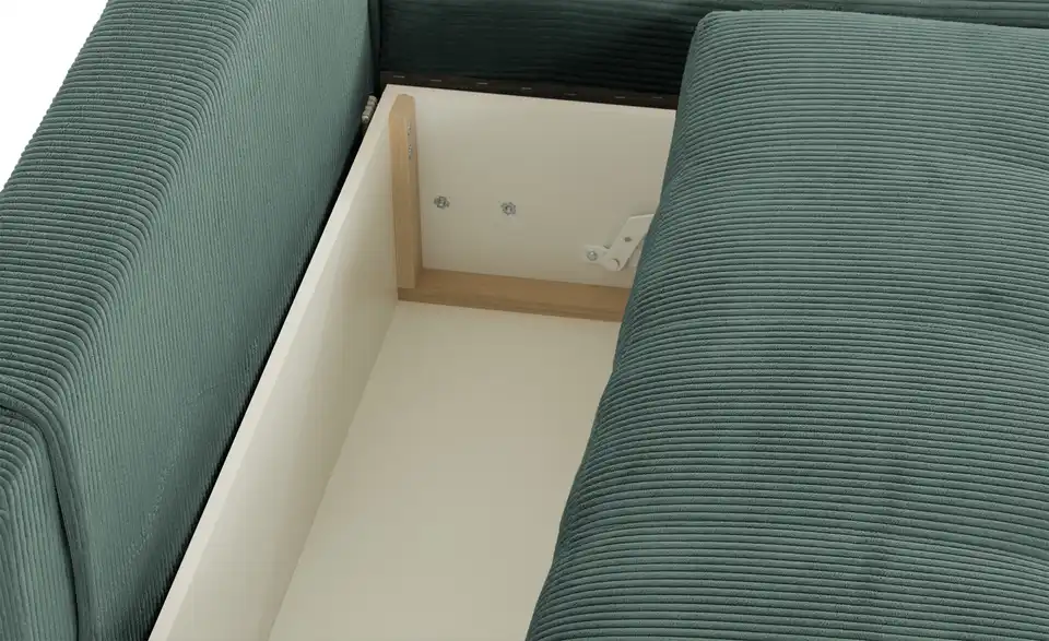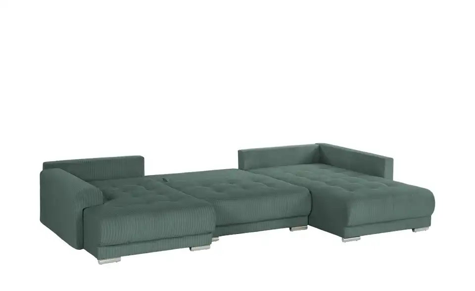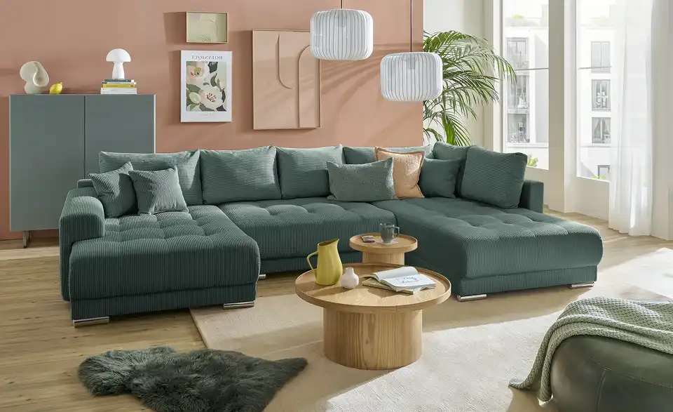 Richtig viel Platz für Freunde und Familie: Diese Wohnlandschaft überzeugt mit zwei einladenden Ottomanen und einer praktischen Schlaffunktion. Sitzen Sie zur Familienfeier bequem zusammen oder genießen Sie in großer Runde einen Filmeabend mit Freunden. Platz gibt es hier genug. Und wenn es doch etwas länger wird, können Sie mit nur wenigen Griffen den Mittelteil umklappen und zu einer Liegefläche umfunktionieren. Dann finden zwei Übernachtungsgäste problemlos Platz. Das dazugehörige Bettzeug lässt sich außerdem im geräumigen Bettkasten unter der Sitzfläche verstauen.Lieferung & Versand